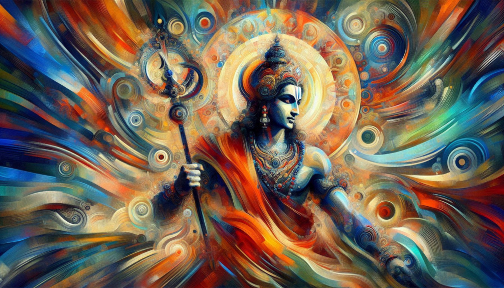 Explore the Divine World of Lord Rama abstract art.